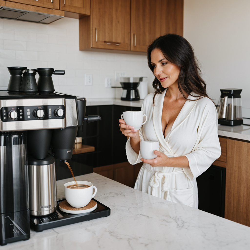Start your day with the ultimate blend of elegance and comfort. Witness a stunning MILF effortlessly crafting her morning coffee, all while donning a chic short robe sans bra. This captivating routine is a testament to the art of casual sophistication, where style meets practicality. Be inspired by this morning ritual that seamlessly combines allure and ease, offering a glimpse into a world where every sip of coffee is a statement of confidence and poise.