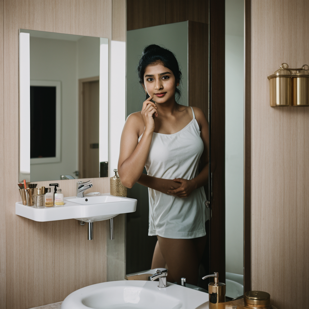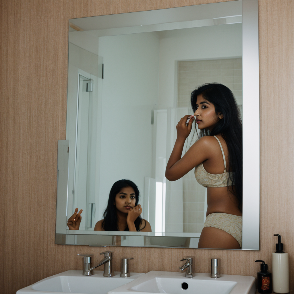 Step into a world where the bathroom mirror becomes a canvas of self-exploration and confidence. In these captivating images, an Indian girl shares her journey of embracing beauty and self-acceptance. Discover how the reflection tells a story of courage, individuality, and grace. These images are not just about aesthetics; they inspire a deeper connection with oneself. Join us as we delve into the art of seeing oneself through a new lens.